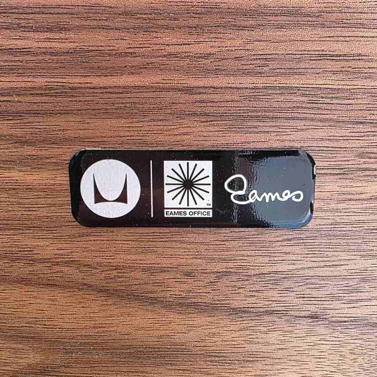 The sticker on the underside of the chair indicates this is a newer lounge chair and ottoman set.