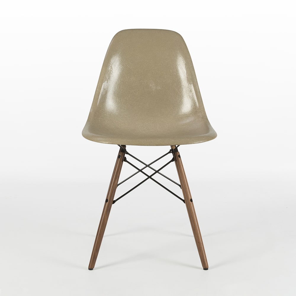 The Eames shells require little introduction with prototypes beginning in the 1940s, production began in 1950. Arm shells were the first to be produced and the side shells were introduced in 1952/1953. Greige was one of the first colours the original shells was produced in and has proven to be an excellent collector’s piece. The earliest examples are defined by their highly fibrous finish adding an extra depth to the colour of the shell.