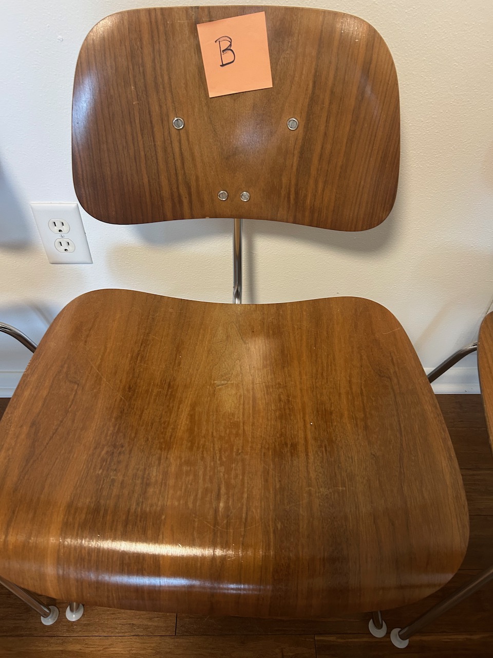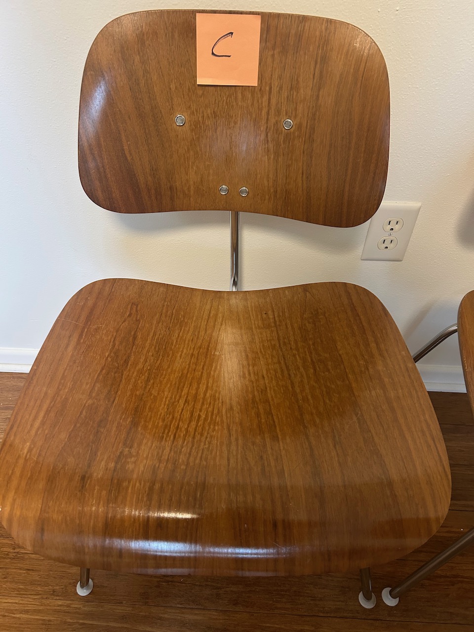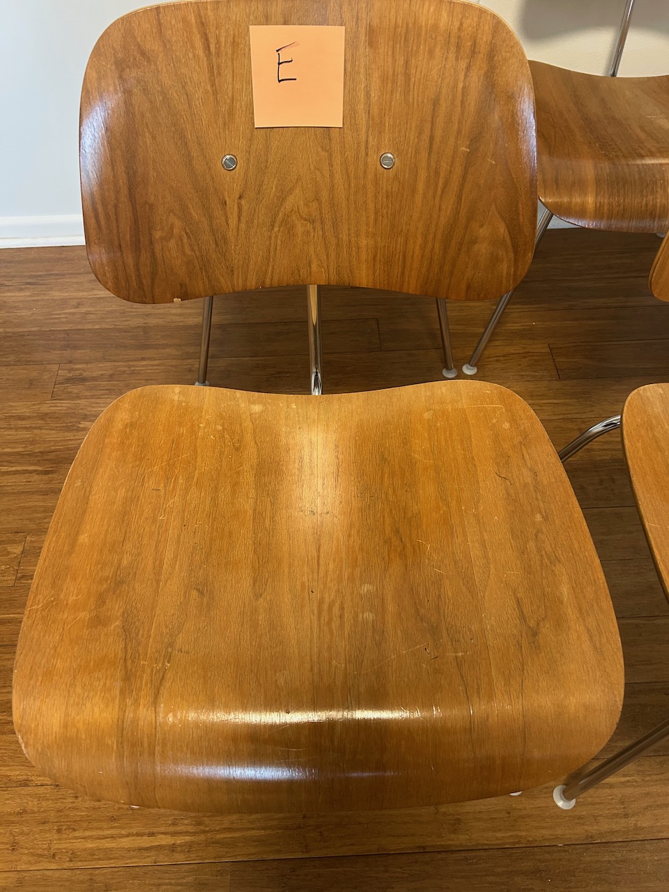 Login to ask a questionThe Chair That’s Smarter Than Your Uncle Bud. Institutionally updated and present for at least 6 PhD's. Lovingly restored. Still cooler than your entire living room. Introducing the Eames Molded Plywood Dining Chair (circa 1946, these are probably closer to the 1960's)—the legendary seat born in a California apartment and raised by design royalty, Charles and Ray Eames. This isn’t just furniture. It’s a mid-century modern icon with curves that say, “I read Bauhaus manifestos for fun.” (discount if you read it and did a dissertation on Bauhaus in German)