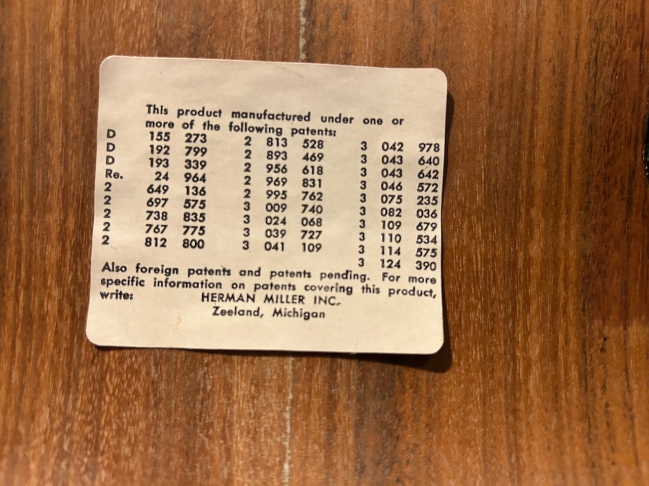 - Officially licensed by Herman Miller. No knockoffs. No nonsense.(note that most have the label and patent numbers, only 1 has the official metal placard of the Eames/HMI that placard alone goes for $1000's)