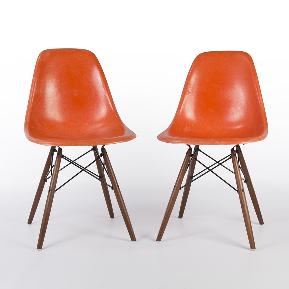 Red Orange 1960s Herman Miller Eames DSW Dowel Side