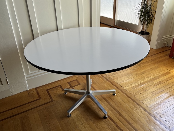 Login to ask a questionEames 650 dining table. Purchased in 1962 in Portland, Oregon. The table has been in our family since then though in storage for many years.