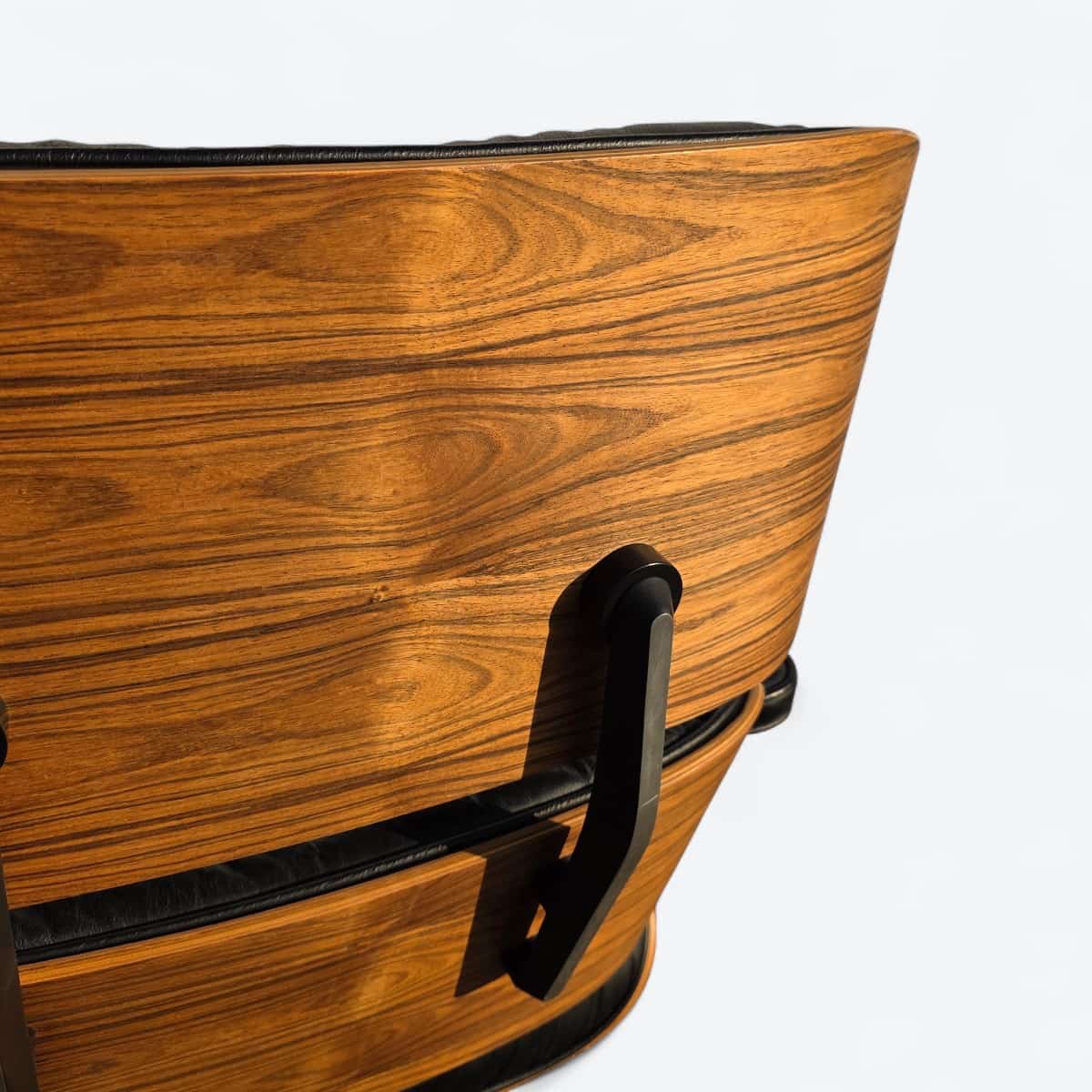 Recognised the world over, this is the iconic Eames Lounge Chair and Ottoman set which ignited the fame that this piece has gained. The stylish black leather compliments the rich colouring of the rosewood wood which maintains a timeless feel that still sees it as being the most sought after version of this classic combination.