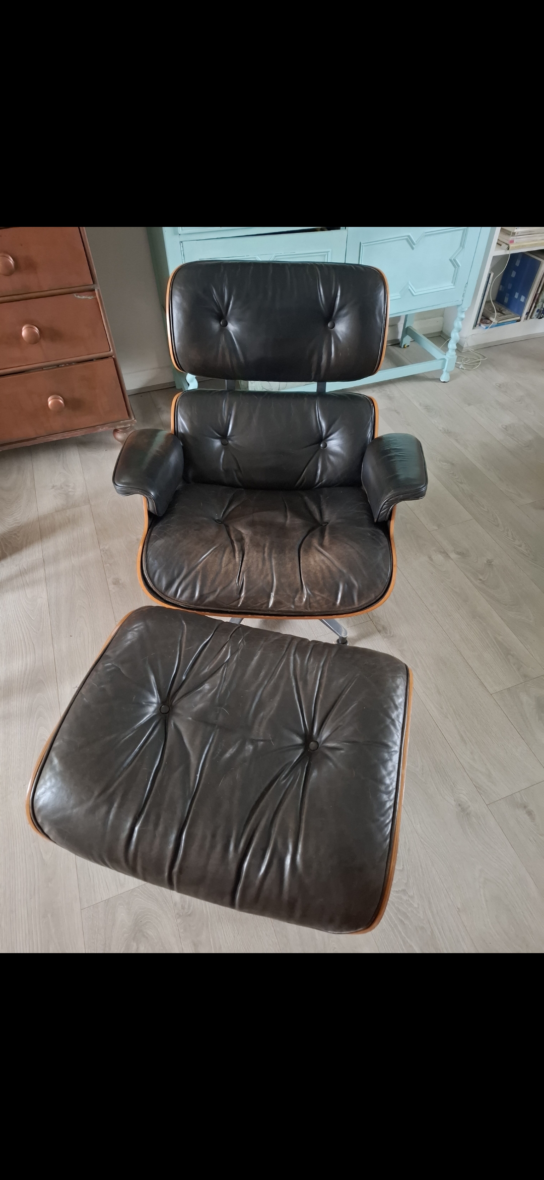 Login to ask a questionA beautiful, authentic 3rd Generation Eames Lounge Chair (670) and Ottoman (671) manufactured by Herman Miller between 1971 and 1974. This set has been in my family since new, originally purchased by my grandfather, and remains in honest, unrestored vintage condition